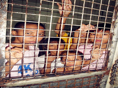 (相片來自http://www.dailymail.co.uk報導–在天主教教宗方濟訪問之前,菲律賓為了清空街道而逮捕或鍊鎖街上貧窮孩子。)