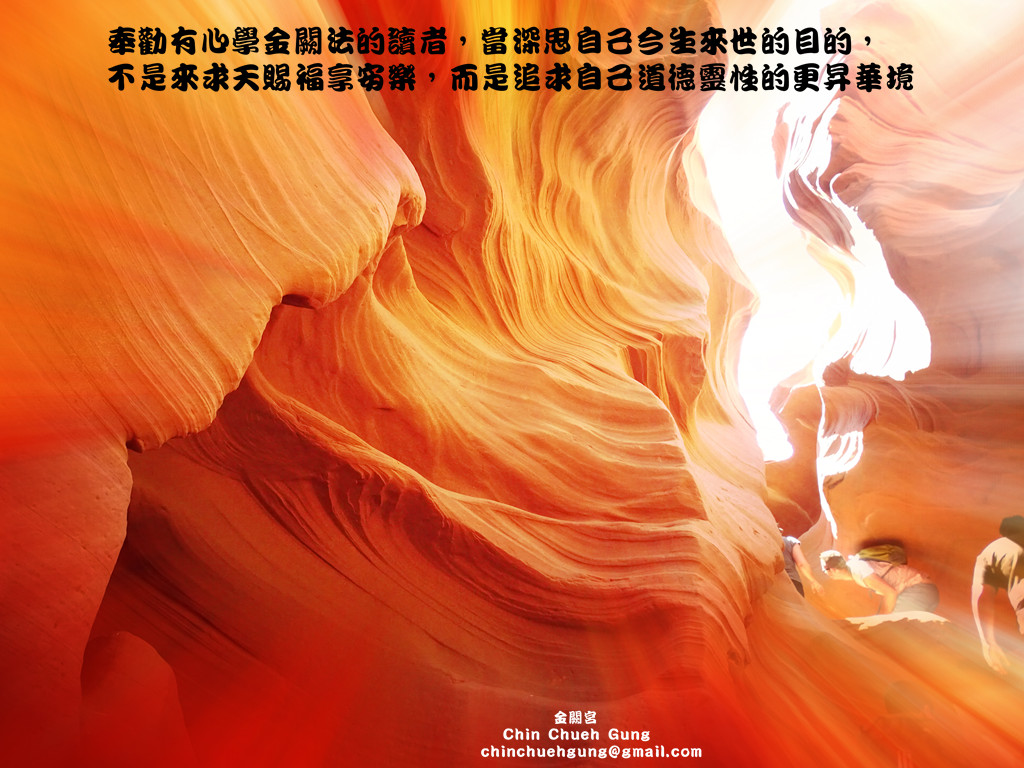 今天早上寫文的時候,祖師告訴我許多人都會說這句話「個人造業個人擔」,但是沒有人曾想過另外一句話:「個人努力個人享」,大家只懼於第一句話,怕擔業債,卻沒有去想如何來努力造德來為自己後福著想,用心改變自己的不是處,凡事遇到了困難,首先不要去怨恨為什麼別人如此對待我,師總是教我們先去思考自己本身是否有缺失,首先撇開冤親債主或是運勢不好的理論,要先反省自己那做得不得體才會得到他人如此的排擠,一位做人處事得體的人,工作能力強,其境遇一定比別人好,反觀若是同在修煉的法門裏,別人拜師補庫總是很順利,運勢漸漸開,但是為什麼自己運氣卻是大起大落時好時壞,這都有許多因素存在,自己就要去思考,切莫用單方面的思考模式來行事,這樣的修煉就太膚淺了!