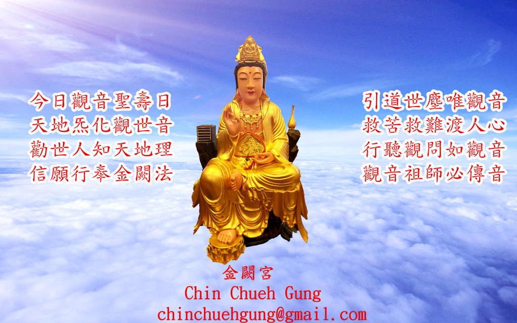 今天是觀音聖壽日,入道金闕宮九年感謝觀音祖師一路相挺不離不棄,帶著我們一家人隨著金闕祖師走,古人說家家戶戶觀世音,我們人打從娘胎出生就有觀音祖師冥冥中帶領著我們,一路引我們行正道,只是世人好攀神格較高的神祇,自從我入道門後,玉皇祖師敕令觀音引道旗給我以後,觀音祖師就一直告訴我,定會把我一家人帶好,觀音祖師會傳給我的引道真法必是源源無窮無盡,其實我的祖師告訴我觀音引道法是很樸實,但威力很大,成幻化成千手千眼觀音祖師,法力無窮,師總是告訴我低調而行,人不問時就不多說,金闕天地真道是不須要靠玄術來壯大自己,或是因為自己覺得有玄有通靈術就可以炫耀在眾人前,讓自己自我感覺良好,這是現今許多修行人的弊病,師尊告訴我謙卑低調,有緣在一起就會來請益。