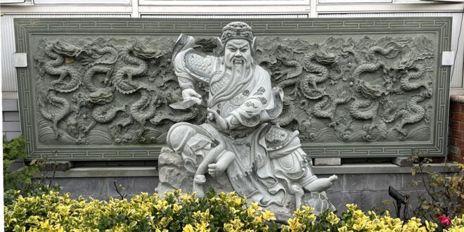壬寅年冬至前夕阿爸與我回到美國,隔天冬至正好海運公司打電話給我說要從港口把金闕北極玄天上帝的石雕托運到金闕宮,又時值十二月初一接駕前夕,一切的安排都在金闕祖師無形的安排中,金闕祖師的靈威莫測連我這位傳音乩生有時都不知道會發生甚麼事,但無形的金闕祖師每次都會很順利的把宮內事情安排得宜,原本這個石雕在12/16就運到美國紐約,那時阿爸與我還在台灣,但海運公司跟我說可能會滯留海外排隊不知哪個時候會運到,我也擔心貨運早拖出來我跟阿爸卻還未回美,宮內人又少,很奇妙的是我們12/21回來,12/22日玄天祖師的石雕像就剛好從港口拖出來送至金闕宮,那天下大雨我們全家人幫司機把玄天祖師的石雕像放在花園前面準備隔天拆櫃,當時我正愁著不知是否能找到六年前替我們吊九龍壁的吊車司機,當我開始翻手機時就跳出這位司機的電話,這位貴人也很乾脆的答應替金闕玄天祖師的石雕吊到該安座的位置,事隔多年我卻這麼奇妙的找到這位吊車司機的電話並能跟他聯繫!