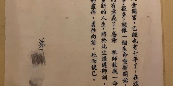 再說他們倆夫妻從進金闕宮不會拜拜,到我教她太太如何打坐唱文,結果這位門生為了他太太因為會唱文,倆夫妻就不告而別,所以如果弟子不遵循祖師訓,那就是教再多也沒用,倆夫妻求祖師時的模樣及自己寫的感言?結果也是拿翹不告而別,所以人心真的說變就變比翻書還要快。